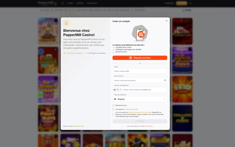 - Accéder au site : Rendez-vous sur la page d’accueil de PepperMill casino et cliquez sur le bouton d’inscription.